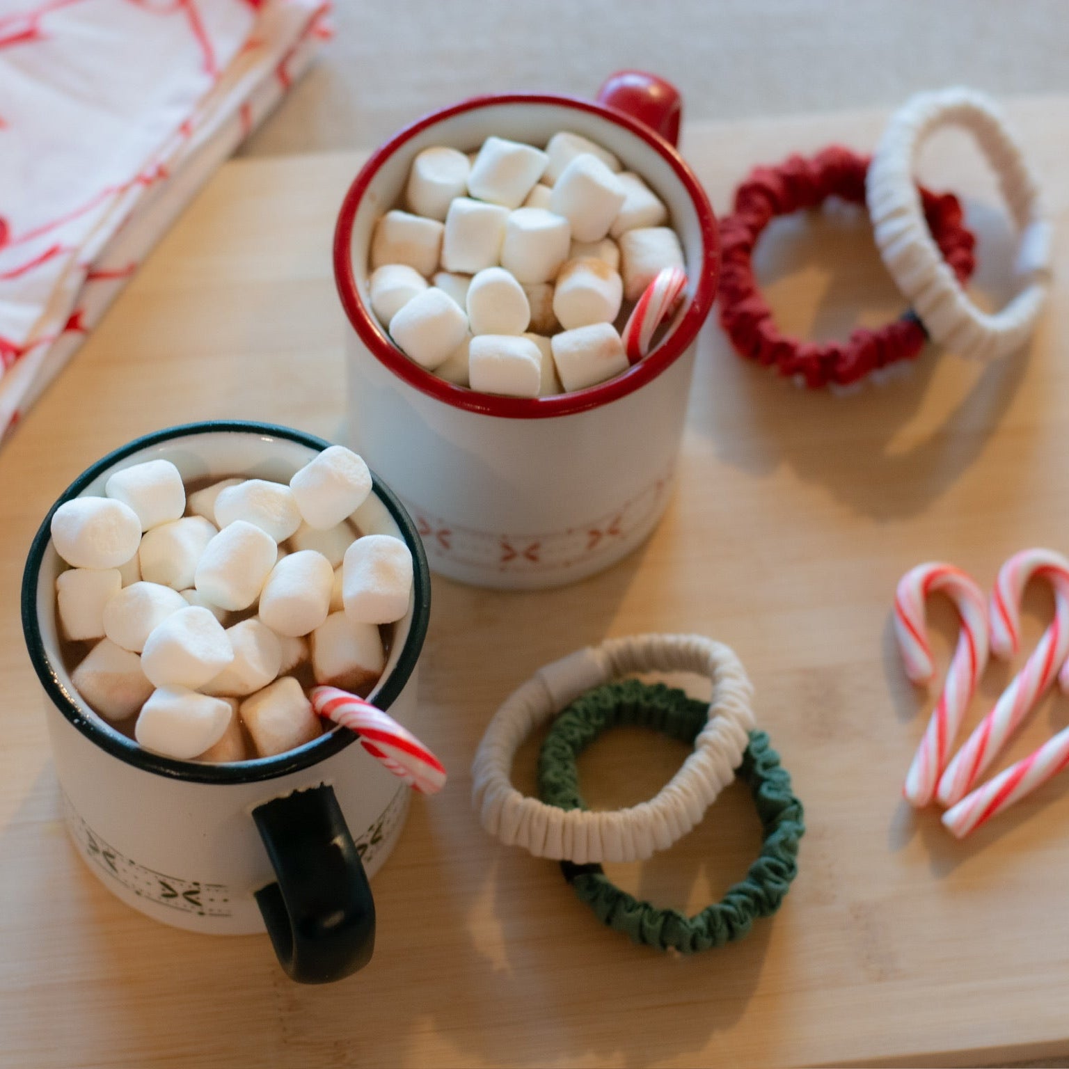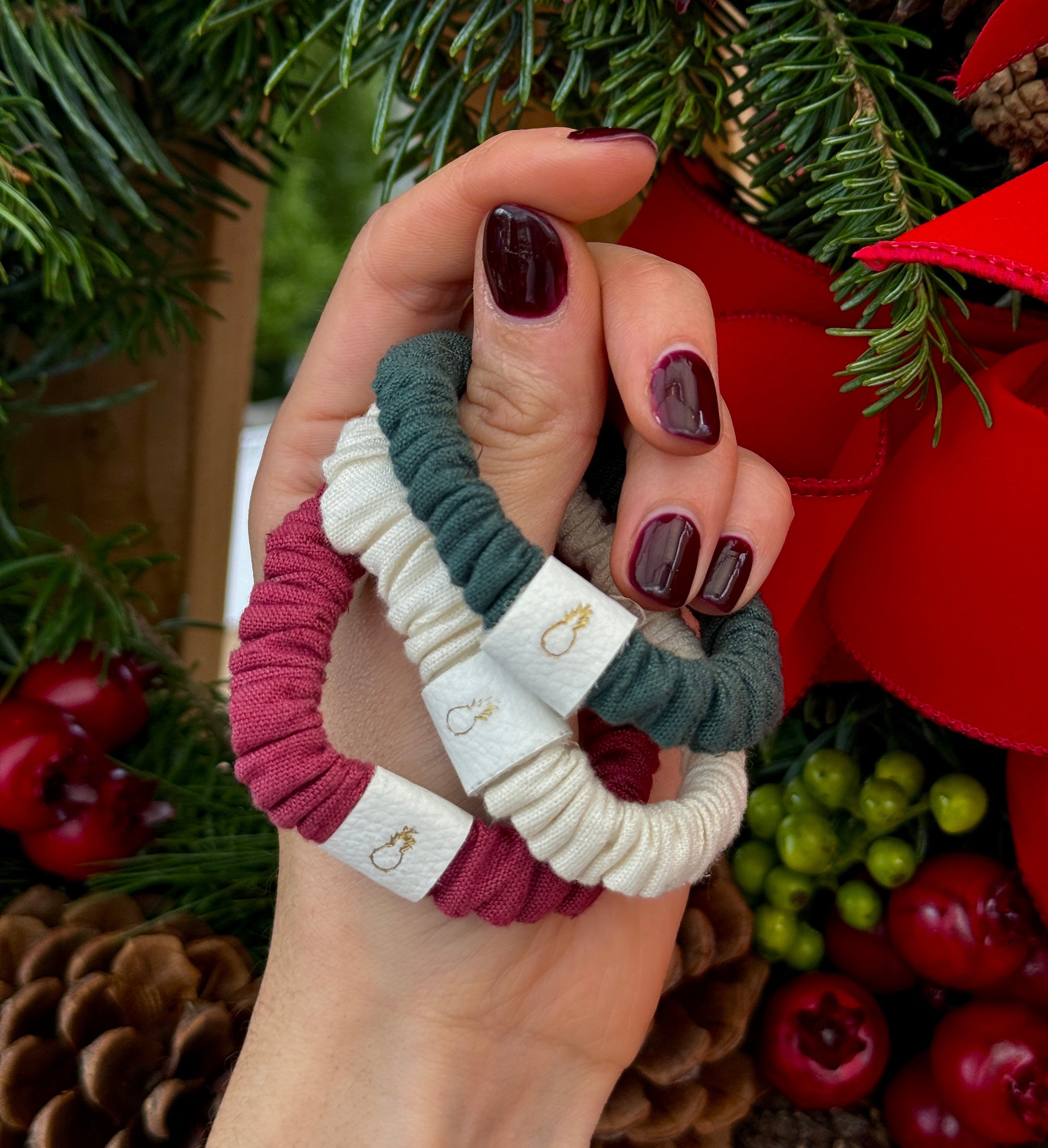 This three pack will include one Vanilla, one Evergreen and one Merry Red colored Piña Everyday Hair Ties™
